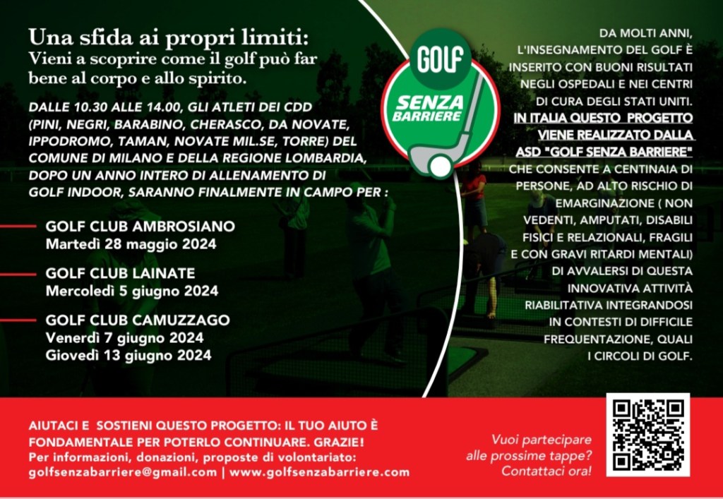 Nonostante la mancanza di fondi e di risorse, non potevamo deludere i nostri atleti speciali che da tanto tempo aspettavano questo momento per loro importantissimo. Le gare nei campi da golf di fine stagione. Oltre che le gare, siamo riusciti, autotassandoci, ad offrire loro il pranzo nel ristorante dei Golf Club. A offrire i pasticcini e soprattutto a premiarli con delle favolose medaglie. Abbiamo estremo bisogno di solidarietà per salvare questo gioiello di civiltà. Progetto nato a Milano, per la prima volta in Europa, ma adesso senza piu risorse per andare avanti. E pensare che basterebbe poco per dare a questi ragazzi una change di vita. Anche quest’anno ci siamo riusciti